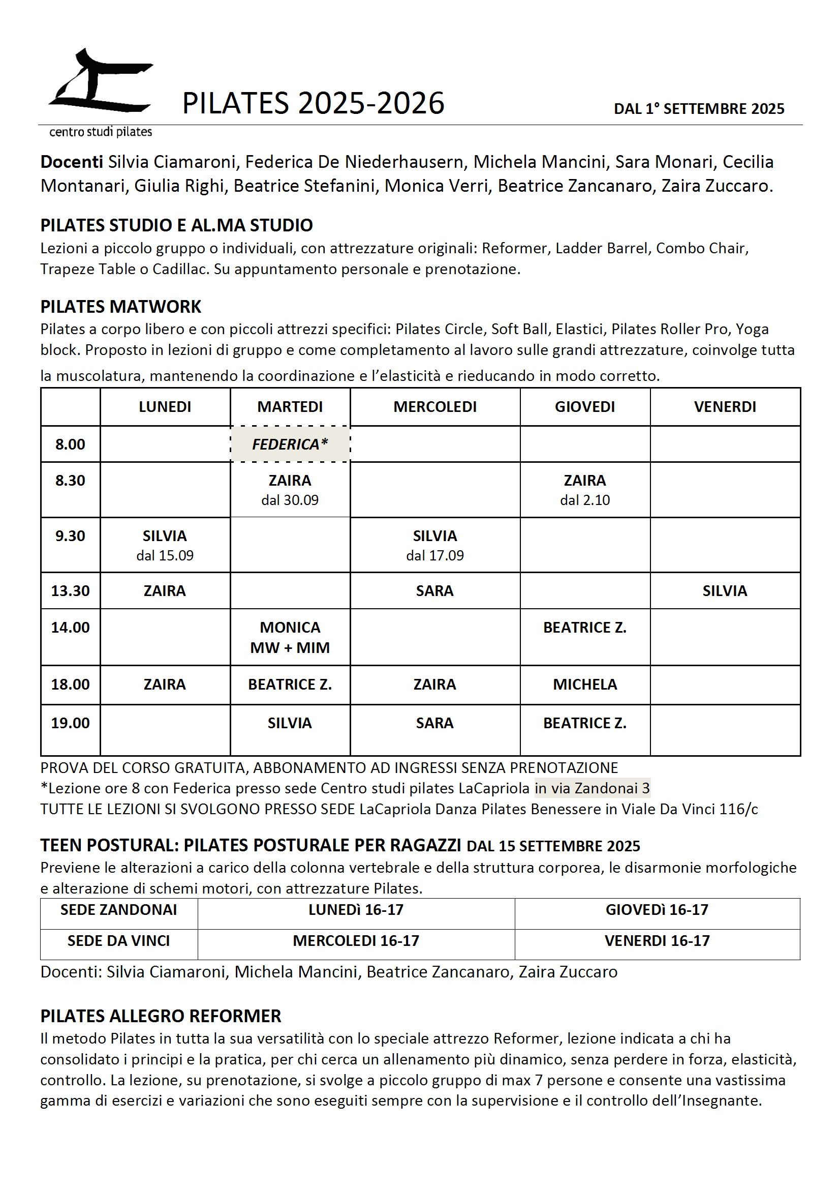 INFO: pilateslacapriola@gmail.com 392 9701211